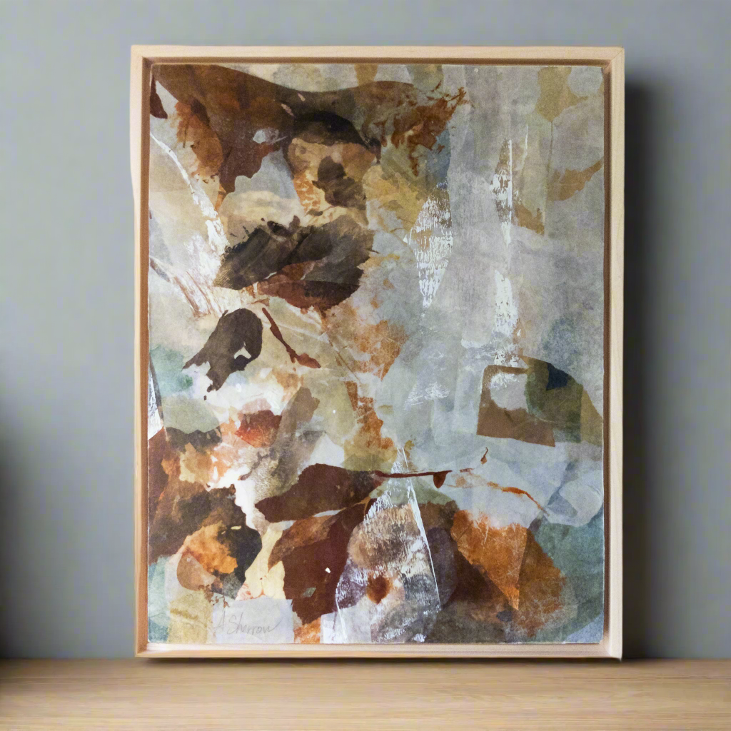 This abstract tree landscape captures the quiet magic of light filtering through layered branches. Hand-torn textures and softly shifting tones evoke a moment suspended in nature’s hush, offering a sense of calm and reflection. The piece blends organic depth with gentle movement, bringing a serene, contemplative presence to living spaces or work environments.
