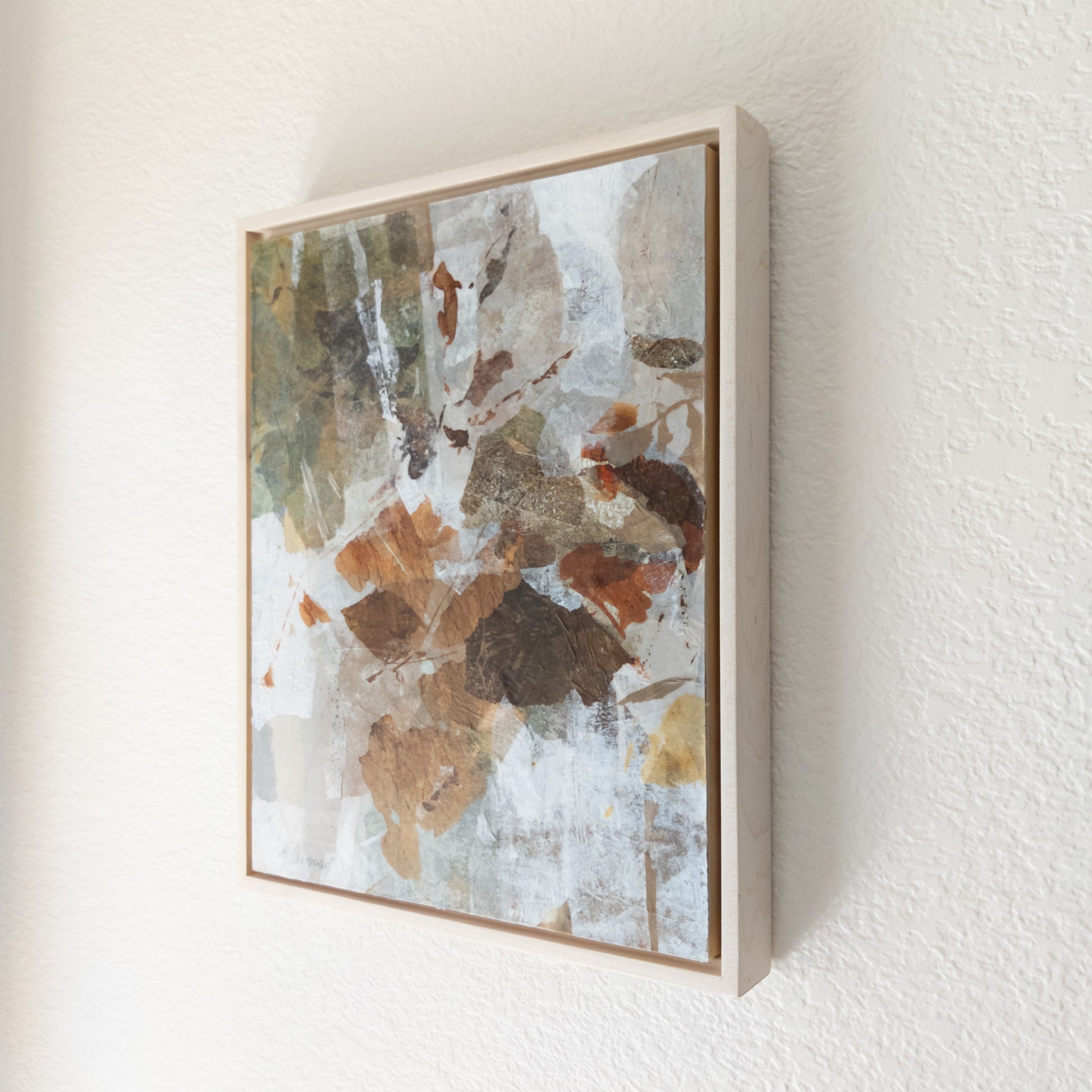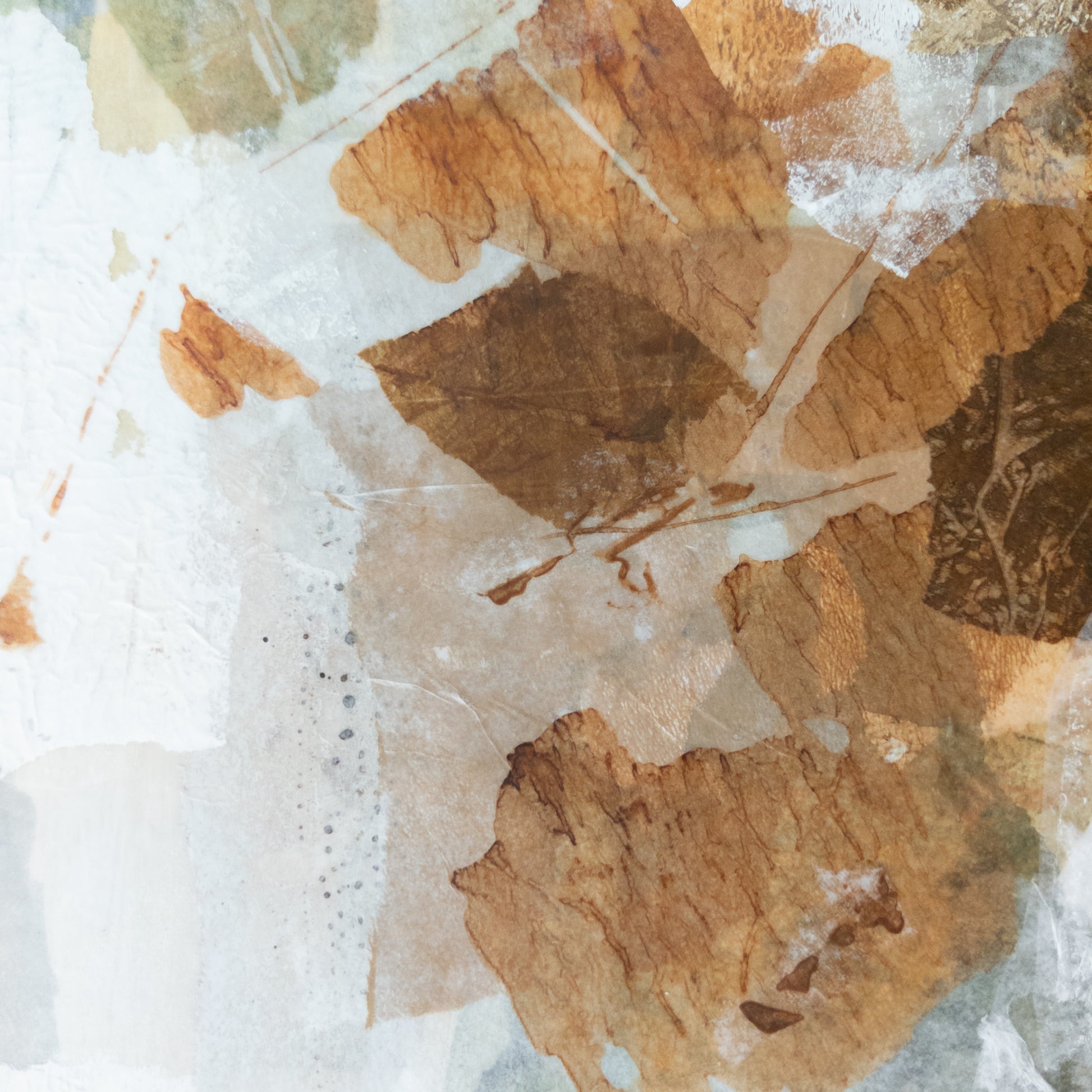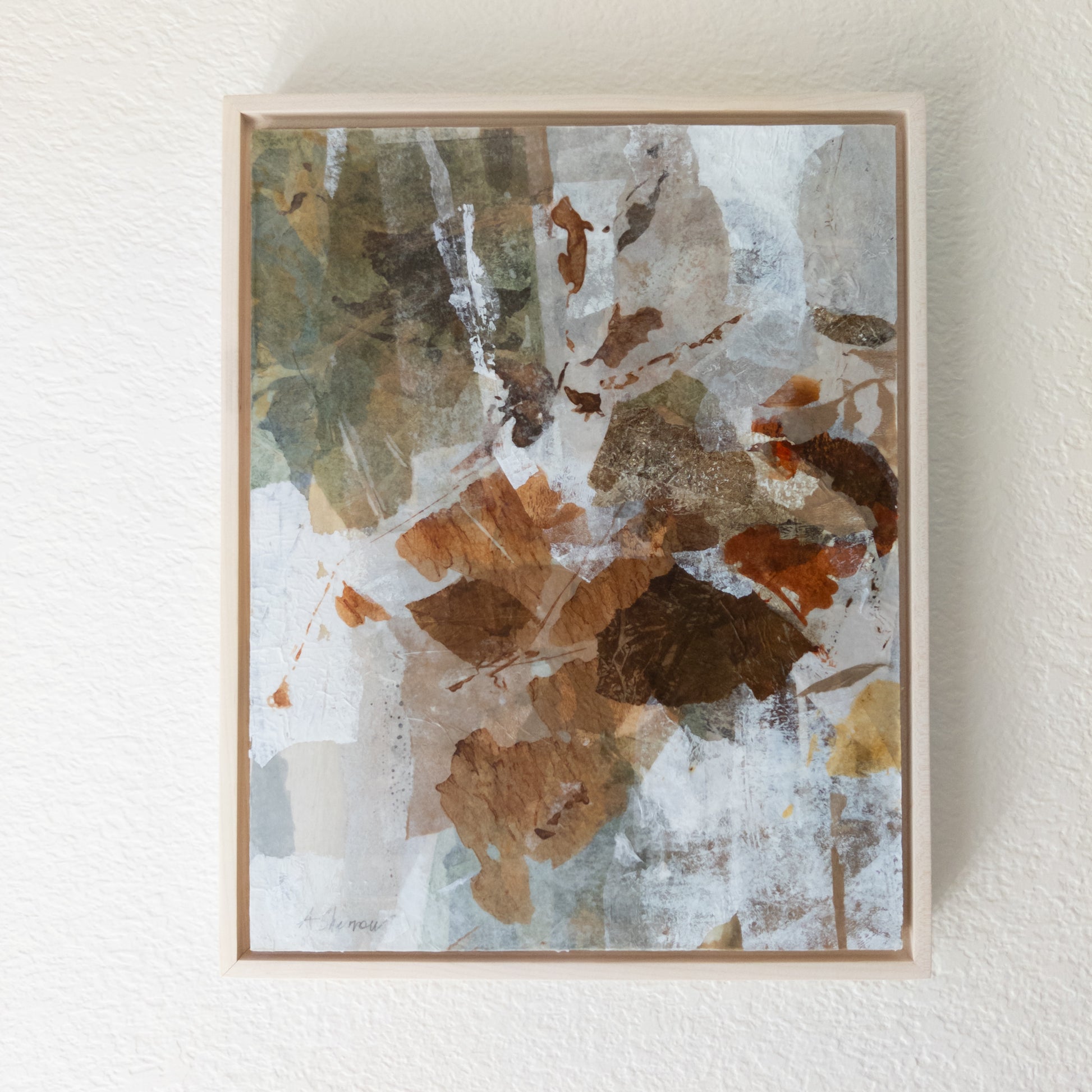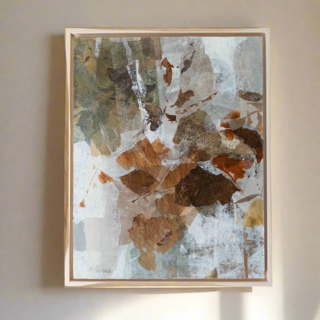 This abstract tree landscape features graceful upward arcs in layered earth tones, evoking branches reaching toward the light. The composition carries a quiet sense of renewal, where soft neutrals mingle with deep, grounding greens. Gentle textures and organic forms bring depth and movement, making the piece both calming and uplifting. Its natural tones create a soothing focal point in any interior, offering balance and tranquility.
